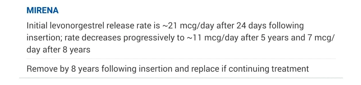 І тут я хочу звернути вашу увагу на те, що в позаминулому році виробник змінив рекомендації за результатами широкомасштабних досліджень і збільшив термін використання Мірени до 8 років.