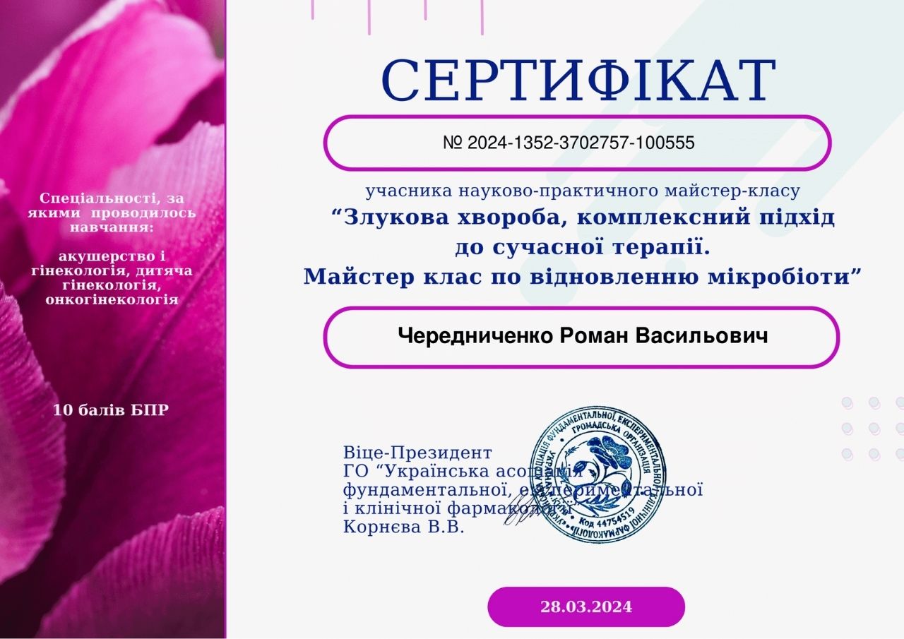 Вища категорія - Кліничний досвід 23 роки