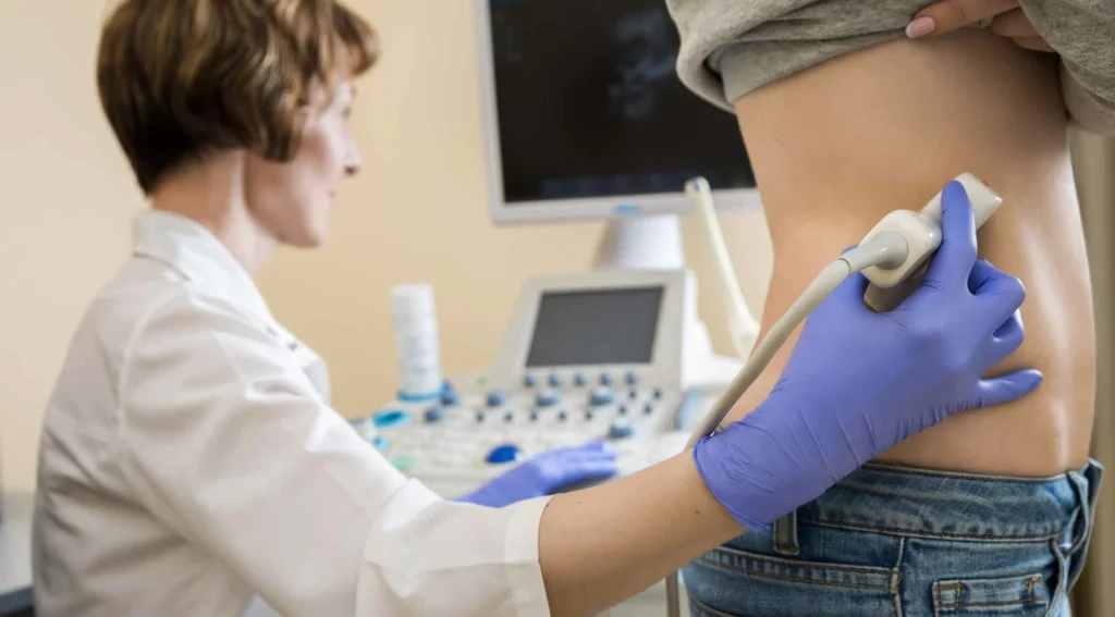 Пацієнт лягає на кушетку, лікар наносить спеціальний гель для кращого контакту датчика зі шкірою. Ультразвукові хвилі формують зображення нирок і сечового міхура на екрані, що дозволяє оцінити стан органів у реальному часі.